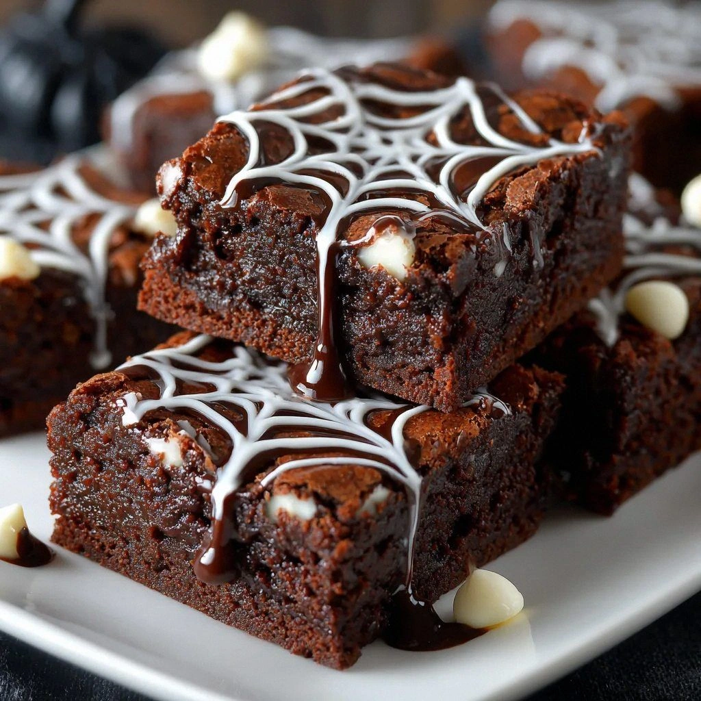 Picture the moment you open the oven door and a wave of rich, chocolatey aroma rolls out, mingling with the faint scent of melted butter and vanilla. The brownies are glossy, slightly cracked on the top, and the edges are crisp enough to snap like brittle bone, while the center remains fudgy and gooey. As you break a piece, the chocolate shivers and melts, releasing a burst of deep cocoa that coats your tongue like velvet. The black icing, drizzled into a spiderweb pattern, adds a dramatic contrast that makes the treat look like a miniature haunted house. The texture is a symphony: a crunch that gives way to a silky melt, a dance of sweet and salty that lingers long after the last bite.