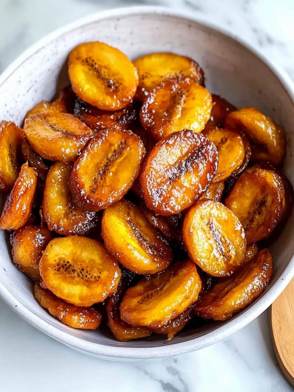 After frying, let the plantains rest on a rack for 5 minutes. This short rest allows the glaze to set and prevents the wedges from becoming soggy. It also gives the caramelization time to deepen, enhancing the flavor.