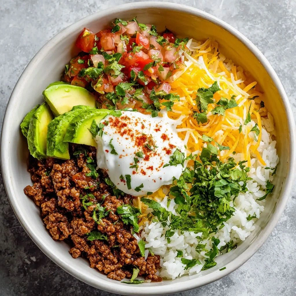 This bowl is more than a meal; it’s a conversation starter. It invites you to experiment—swap the beef for chicken, add a splash of hot sauce, or throw in some corn for a sweet crunch. The secret lies in the balance: the savory beef, the neutral rice, the bright lime, and the cool avocado create a harmony that is both comforting and exciting. Whether you’re feeding a hungry family, prepping meals for the week, or hosting a casual dinner, this taco rice bowl delivers crowd‑pleasing results with minimal fuss. Stay with me here—this is worth it.